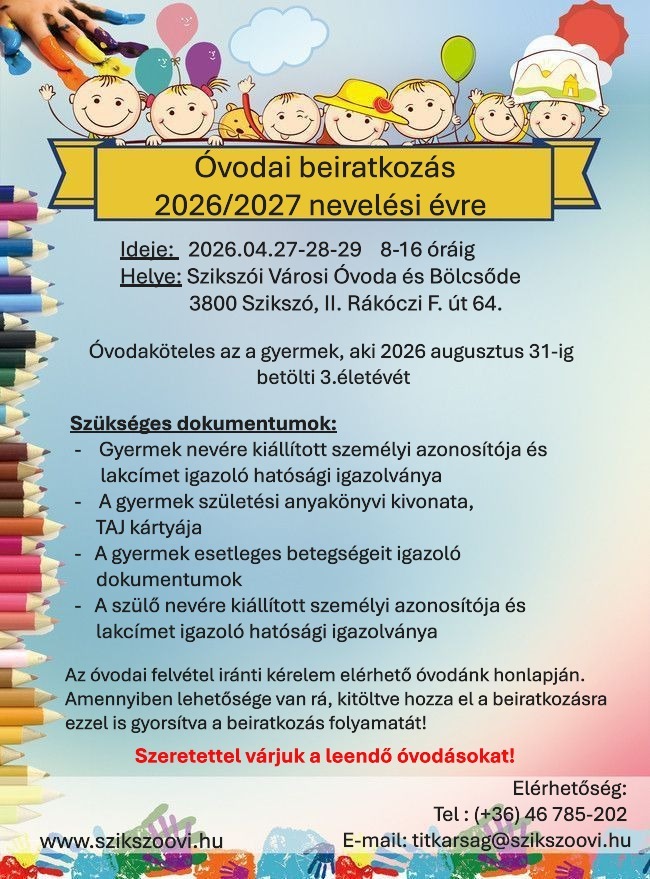 Óvodai beiratkozás 2026/2027