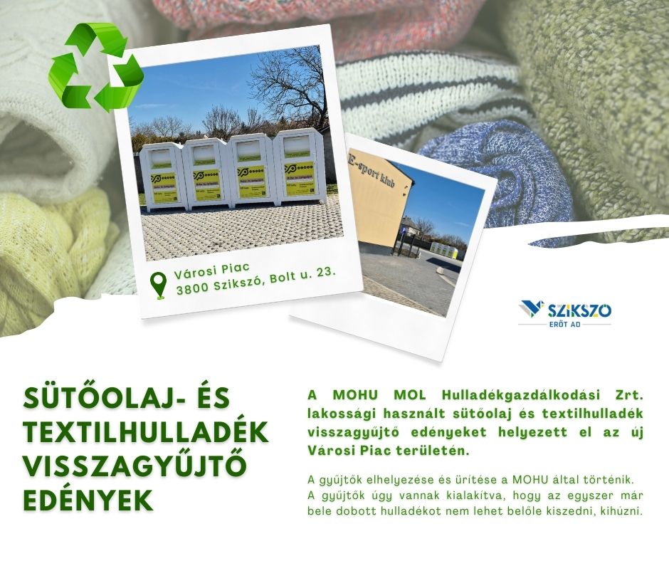 Sütőolaj- és textilhulladék visszagyűjtő edényeket helyezett ki